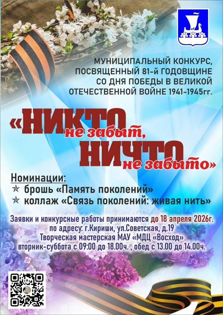 Когда: 23 февраля 2026 годаГде: г. Кириши, лыжная трасса в парке «Прибрежный» В программе:Свободный стиль.Марафон: 50, 30, 20 км (для взрослых).Лыжная гонка для участников до 18 лет: 10 и 5 км. Сбор и регистрация участников — в 9:30. Более подробно с программой можно ознакомиться, отсканировав QR-код на афише. Проведите день активно и с пользой для …