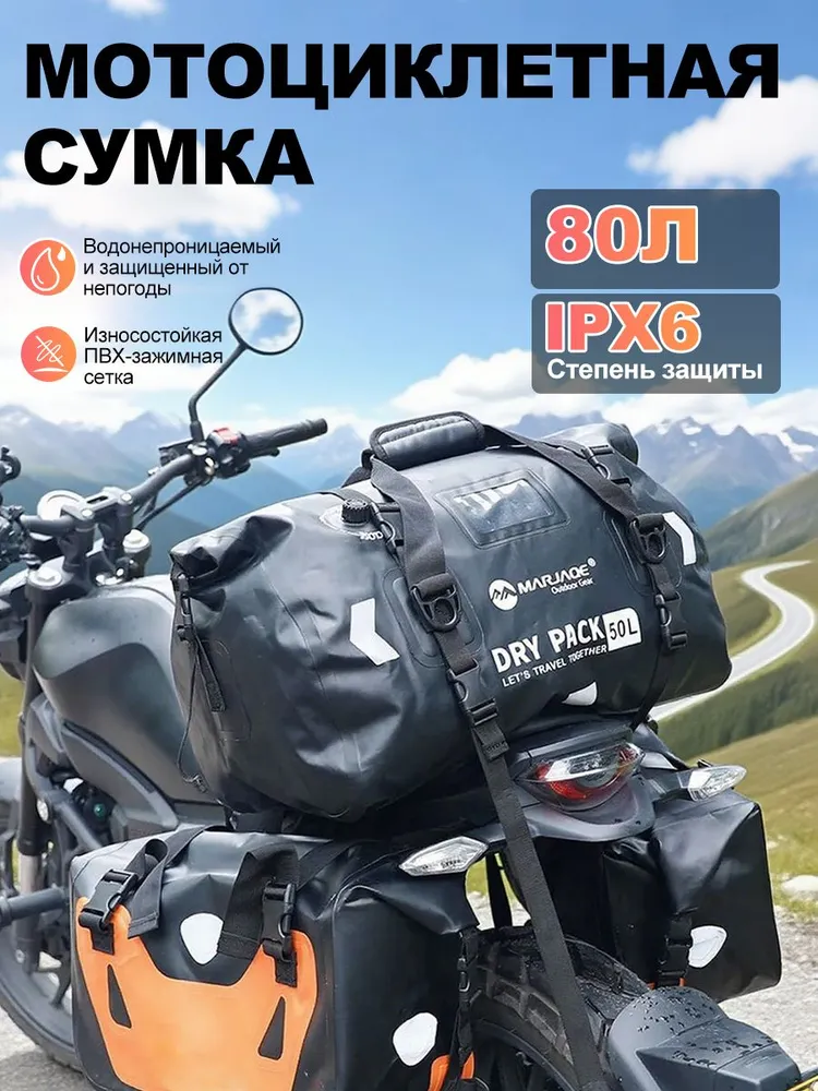 Непонятно по какой причине, но билеты с багажом стоили космос! Да и нам мотоциклистам большой багаж ни к чему, поэтому вопрос стоял остро - как сделать так, чтобы все поместилось и в тоже время выглядело это как ручная кладь. Выбор пал на мотобаул. За 2500 руб я получил с озона 50 литровый баул, который был укомплектован пристяжными ремнями, стяжными ремнями и был герметичным, с клапаном стравливания воздуха. Честно говоря изначально я воспринял эту покупку скептически. Мягкая сумка из полиэстера с ПВХ покрытием, ну понятно же, что это одноразовая фигня, которую за такие бабки не жалко выкинуть прямо там же. Однако, забегая вперед, это одна из самых удачных моих покупок за последнее время. Теперь это мой любимый баул, который выдержит любой апокалипсис.