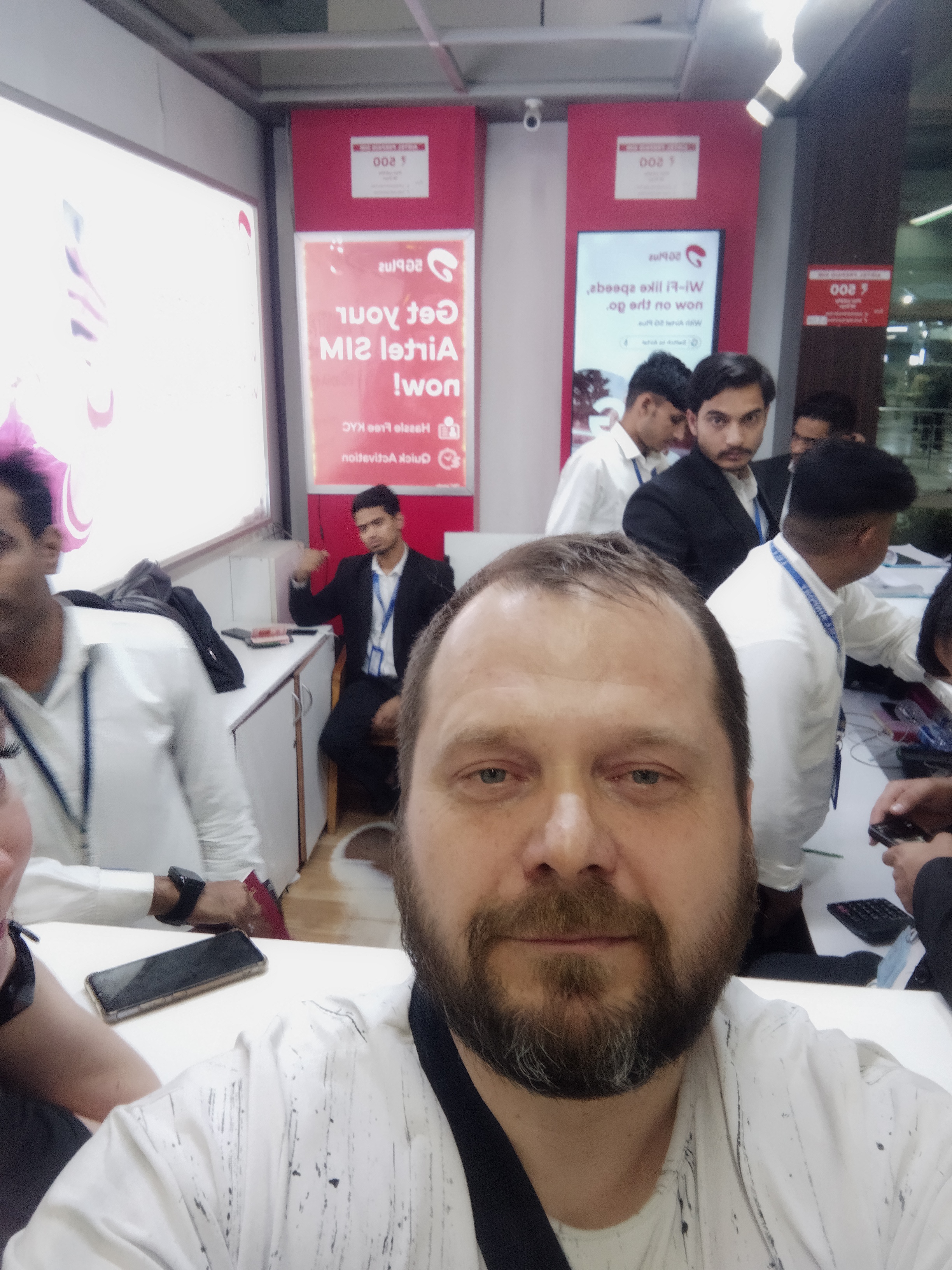 Первое время очень сложно доверять людям, которые выглядят как цыгане 🙂 И потому все время находишься на фоксе. А тут понадобилось отдать в загончик, где толпилась стайка этих цыганят свой паспорт и телефон. Очень ловко пальцы сотрудника сотовой связи оприходовали мой телефон(российские симки я вынул еще в мск, сразу же на борту самолета, после посадки), вставил симку и зашуршал по настройкам. Вуаля! За 500 рупиев, мне обещана сотовая связь и интернет, которого мне должно хватать на ежедневные надобности. Все тоже повторилось и у ребят. Мы тут же записали номера друг-друга и попробовали позвонить - а вот и нифига! Это же очень хорошо, что мы сразу же не вышли из аэропорта, а сначала проверили. Э-эээ аллё, милейший что за фигня??? Ай кент кол май френдс!